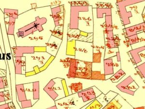 In der Fassung 1910 des Katasters von 1866 ist der Neubau schraffiert darüber gezeichnet. Wann der Verbau auf der Ostseite entfernt wurde ist nicht mehr feststellbar.